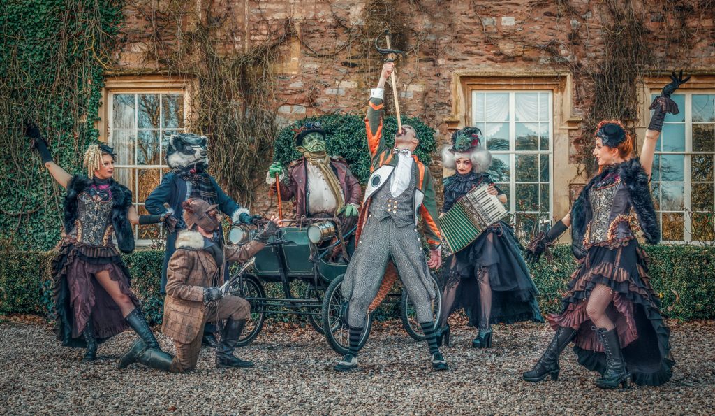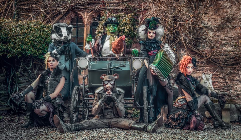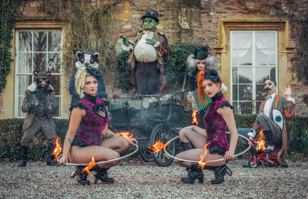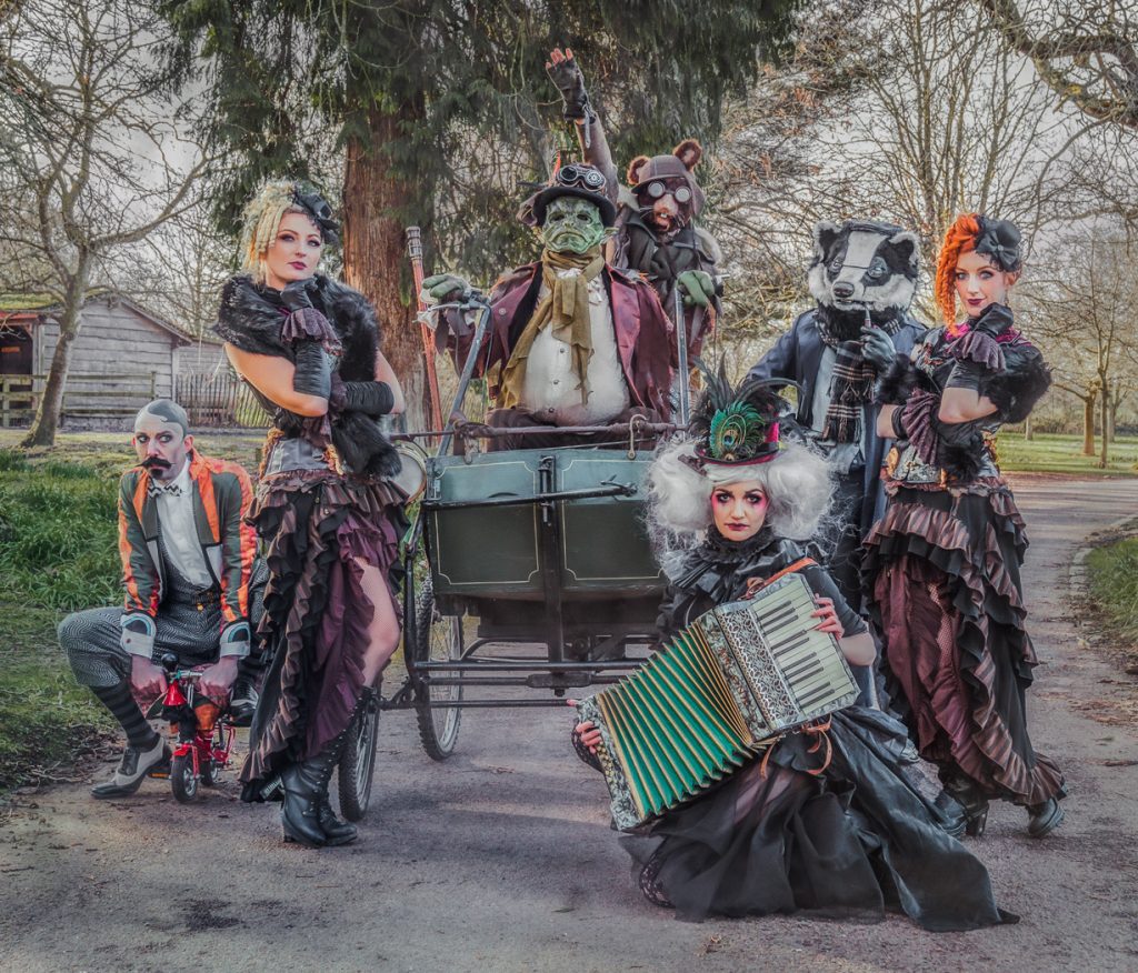 We LOVE our roaming characters. We are very aesthetic based and have the highest attention to details. We believe walkabout characters can really be the difference of making your event fully immersive. Getting up close and interacting with your guests makes them feel truly involved and will certainly create memories they will not soon forget. These characters are composed of silly banter, entertaining tricks and creating fantastic photo opportunities. We have so many characters to choose from but we’ve listed just some of our favourites above! Frosty the Unicorn and the Flower Fairies Rose, Sweet Pea and Lavender are great to bring a touch of magic to your event and as enchanted forest entertainment and fairytale entertainment. The Rococo Ladies are very well-to-do upmarket ladies of leisure with a sweet French accent and are a pure delight. They’re great for the slightly fancier themed events and as rococo entertainment, 17th and 18th century entertainment. Our Silent Movie characters really are a totally unique act. Painted black and white like a blast from the past, they’re look like they’re from an old Hollywood movie from the 1920s. This is a silent act which means the entertainment is in the over-dramatic gestures and gimmicks they perform. Having photos with these character truly looks and is mesmerising! We’ve got Alice in Underland which is effectively a slightly gothic take on the classic Alice in Wonderland entertainment. These characters are truly silly and full of nonsense! Watch the Hatter juggle his teacups and the Hare bimble around. A great selection when you want a slightly unique twist on Alice in Wonderland themed entertainment. Now we’ve got Blaze the Dragon has his very own Dragon Warriors! Book them with or without him to add a hint a apocalyptic presence to your event. They’re also available as apocalyptic stilt walkers! Next in our line-up, we’ve got Mr Toad’s Magical Menagerie! This is actually a full roaming cabaret but you can also book them as roaming characters without their special skills – read on to number 10 to find out more! Last but not least we’ve got the ARGHH Pirates! This eccentric duo have electric mini ships that they ride around on, hosting treasure hunts with the kids and interacting cheekily with the adults. These are perfect as children’s entertainment or as adult entertainment. No ship or sea is too wild for this bunch!